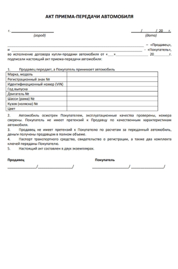 Прием-передача автомобиля происходит при встрече с нашим сотрудником, который осматривает авто, фиксирует его состояние и составляет акт приема-передачи. Вы или ваш представитель подписываете документы.